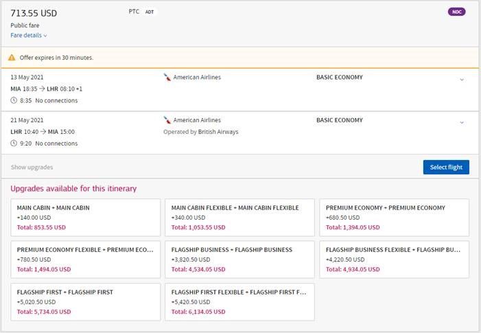 Reisende wünschen sich Einfachheit und Personalisierung. Sie wünschen sich maßgeschneiderte Angebote auf ihrem bevorzugten Kanal, auf dem sie vergleichen und mehr kaufen können. NDC bietet Reisebüros mehr Informationen über Flugdienste und -annehmlichkeiten, reichhaltigere Inhalte einschließlich Bildern und Videos und öffnet die Tür für weitere Innovationen. So können Sie Ihren Reisenden mehr Informationen darüber bieten, was sie kaufen, und erhalten relevantere Angebote basierend auf ihren Präferenzen. NDC gibt Reisebüros Zugriff auf dynamische Preise, speziell ausgehandelte und gebündelte Angebote, mehr Alternativangebote, mehr Zusatzleistungen sowie detailliertere und dynamischere Informationen. Um ein Gefühl für diese neuen Inhalte zu bekommen, lesen Sie, was unser NDC-PartnerAmerican Fluggesellschaften tut.