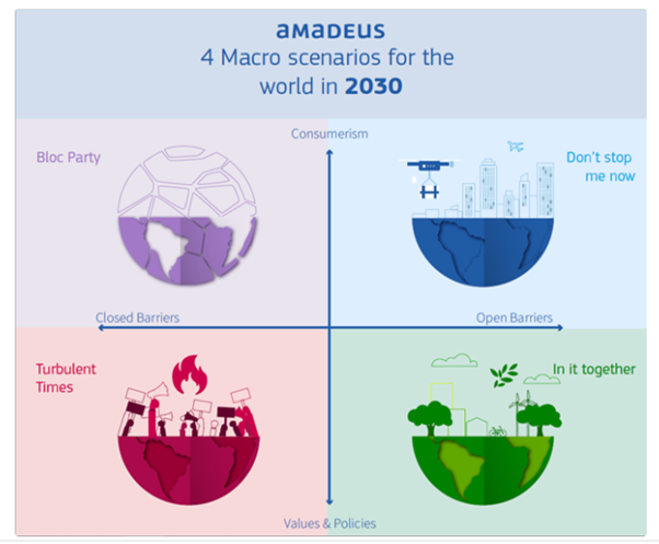 In früheren Beiträgen wurden die Auswirkungen der einzelnen Szenarien untersucht, und in den vorherigen Beiträgen wurde auch wiederholt, dass es sich bei den Szenarien nicht um Vorhersagen handelt: Es handelt sich um plausible mögliche Ergebnisse, die auf einer ganzheitlichen und weitreichenden Interpretation von Trends im Reisebereich und darüber hinaus basieren. Niemand sagt, dass die Welt der "Blockparty" oder des "Gemeinsam dabei" das Reisen im Jahr 2030 bestimmen wird, und wenn Sie das glauben, dann haben Sie den Punkt verfehlt.