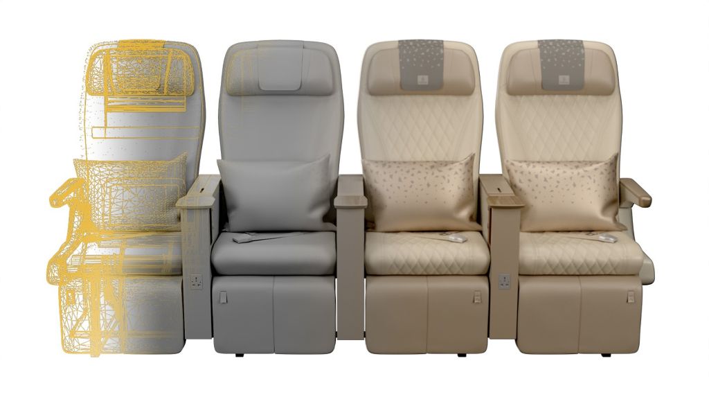 Die gezeigten Ansichten sind identisch mit der Realität, sowohl in Bezug auf die Position des Sitzes in Bezug auf die Fenster, die anderen Sitze, die Toilette, die Bordküchen usw., als auch in Bezug auf ihre Eigenschaften, Materialien usw. Wir erstellen all diese Ansichten von Grund auf neu, ohne das Flugzeug zu besuchen.