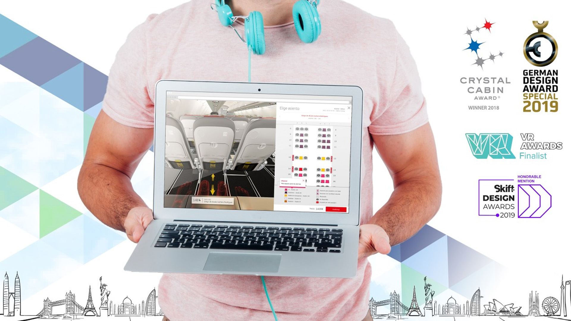 3D SeatMapVR hat den Crystal Cabin Award 2018 für das beste visionäre Konzept gewonnen. Es wurde unter anderem bei den Deutsch Design Auszeichnungen, Skift Auszeichnungen und VR Auszeichnungen mit besonderen Erwähnungen ausgezeichnet. Dies ist eine weltweite Anerkennung für ein Produkt, das der nächste Standard in der Sitzplatzauswahl sein wird.