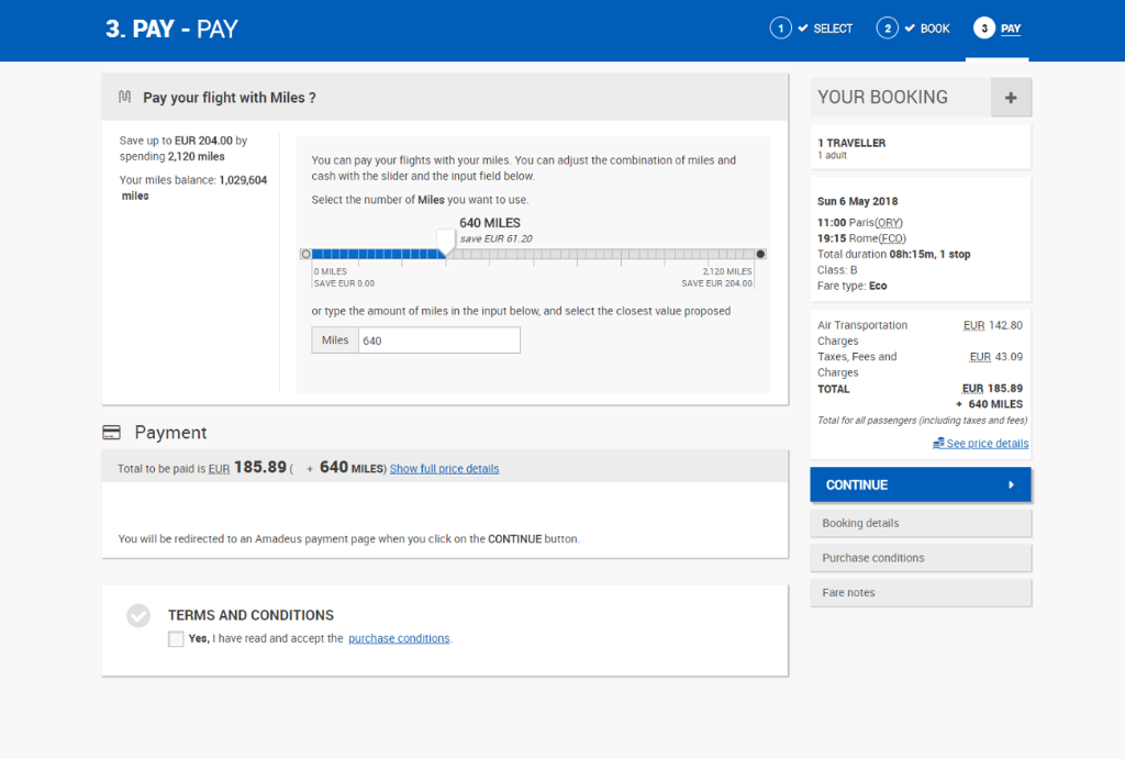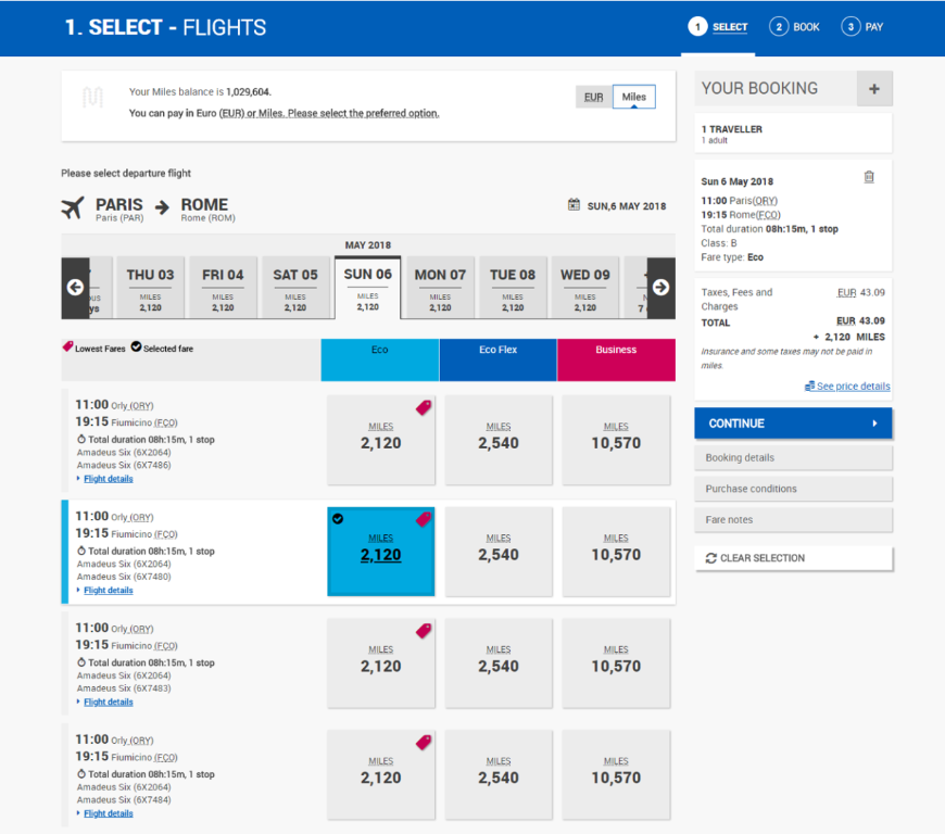 in Meilen durch die Nutzung kommerzieller Klassen für Meilenbuchungen.
