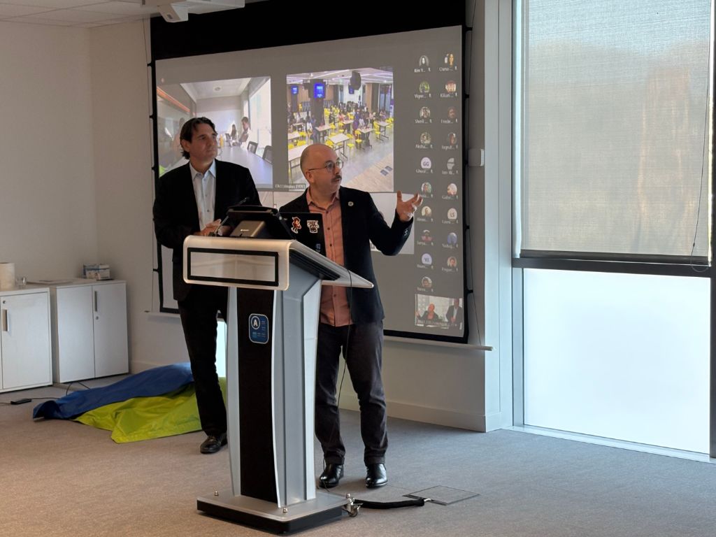 Representatives from Travel with a mission and Amadeus presenting at the closing ceremony for Tech4Impact