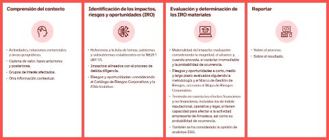 En 2024, Amadeus actualizó su evaluación de materialidad siguiendo los principios de doble materialidad con arreglo a los requisitos europeos. A través de este enfoque, Amadeus identifica los aspectos de sostenibilidad que resultan materiales en un contexto de dos dimensiones interrelacionadas: materialidad de impacto y materialidad financiera.
