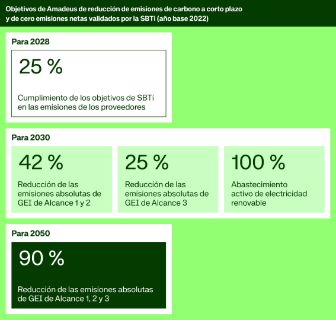Objetivos de Amadeus de reducción de emisiones de carbono a corto plazo y de cero emisiones netas validados por la SBTi (año base 2022)